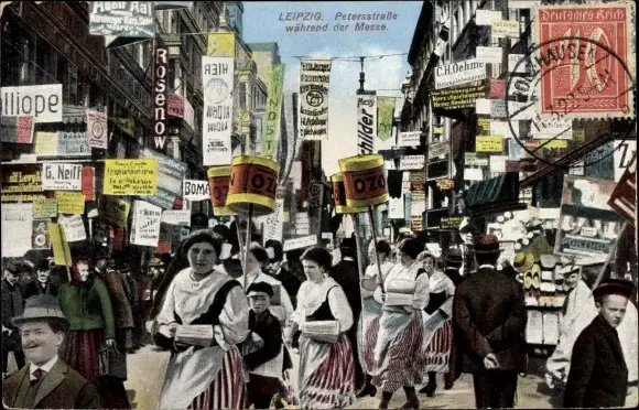 Ak Leipzig in Sachsen, Peterstraße während der Messe, Reklameschilderträger