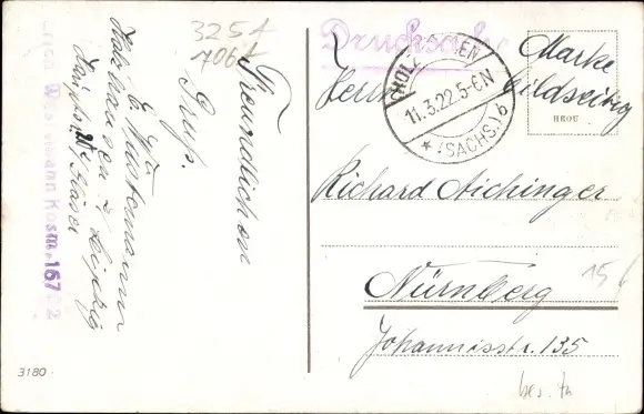 Zustand, siehe Scan, gelaufen, 1922 - ca 14 cm X 9 cm