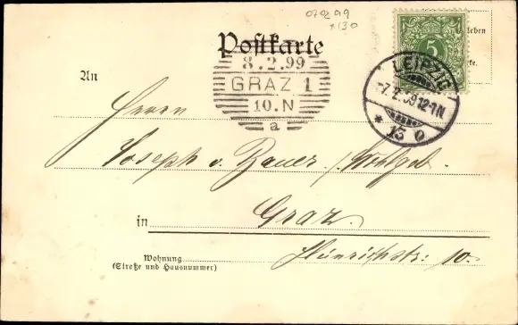 Zustand, siehe Scan, gelaufen, 1899 - ca 14 cm X 9 cm