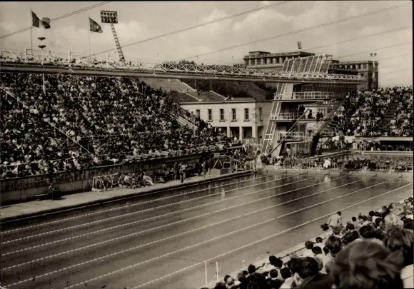 Ak Leipzig in Sachsen, Schwimmstadion, Zuschauer, Sprungturm