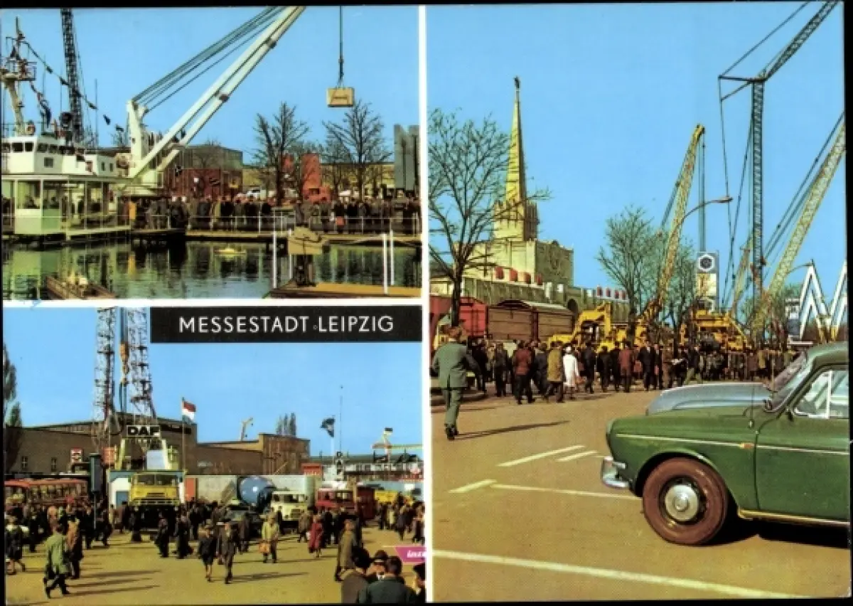 Ak Leipzig in Sachsen, Technische Messe, Kran, Auto
