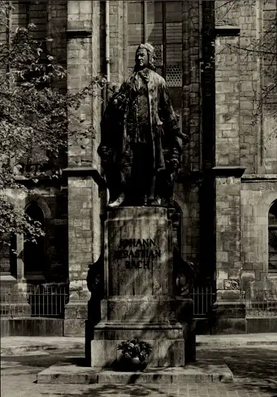 Ak Leipzig in Sachsen, Thomaskirche, Bach-Denkmal