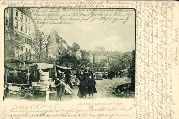 Ak Leipzig in Sachsen, Töpferplatz während der Messe