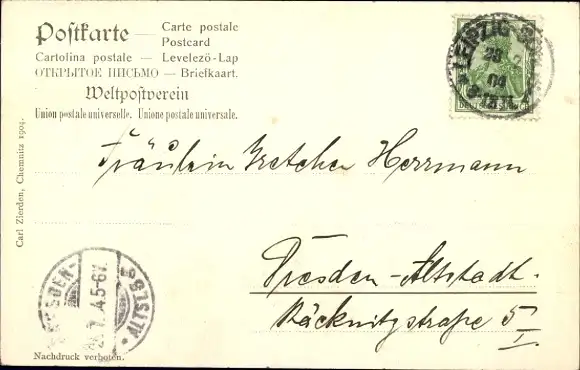 Zustand, siehe Scan, gelaufen, 1904 - ca 9 cm X 14 cm