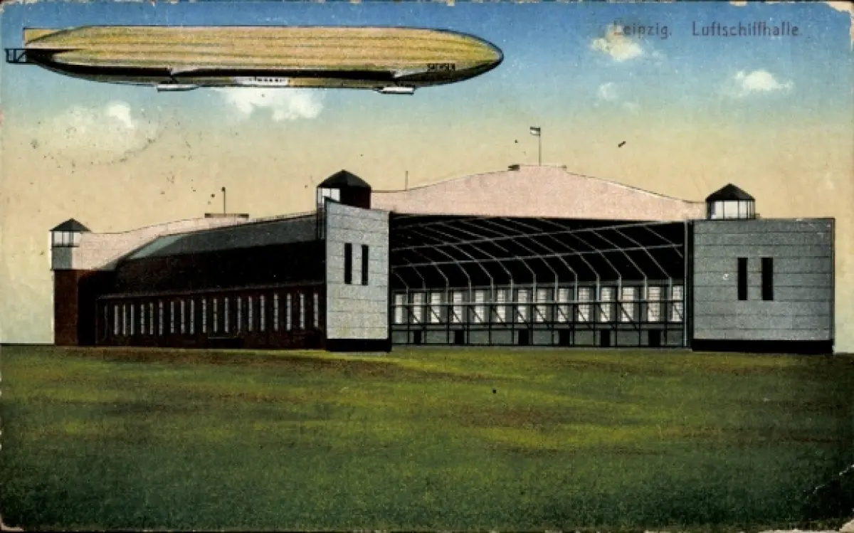 Ak Leipzig in Sachsen, Zeppelin Sachsen über der Luftschiffhalle