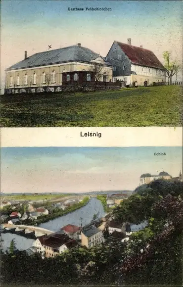 Ak Leisnig an der Freiburger Mulde Sachsen, Gasthaus Feldschlösschen, Schloss