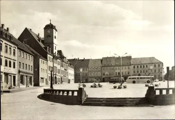 Ak Leisnig in Sachsen, Marktplatz, Busse