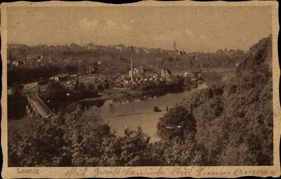 Ak Leisnig in Sachsen, Panorama, Eisenbahnbrücke, Kirche