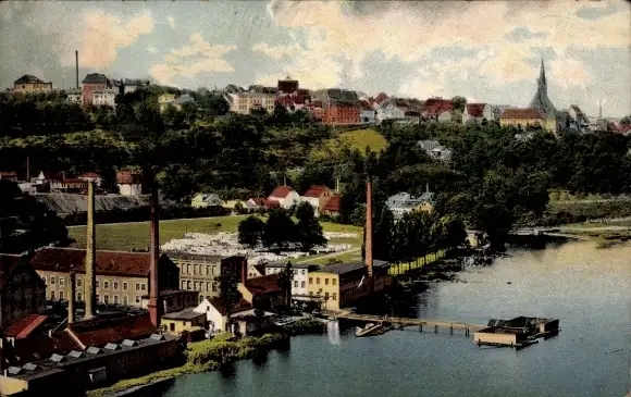 Ak Leisnig in Sachsen, Teilansicht, Fabriken