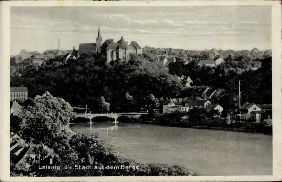 Ak Leisnig in Sachsen, die Stadt auf dem Berge, Brücke, Panorama, Kirche