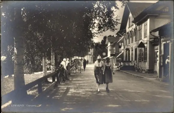 Ak Leksand Schweden, Straßenpartie, Frauen in Tracht