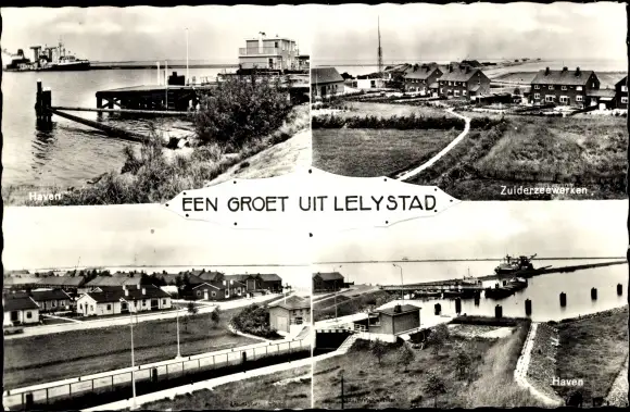 Ak Lelystad Flevoland Niederlande, Zuiderzee Works, Hafen, Wohnhäuser