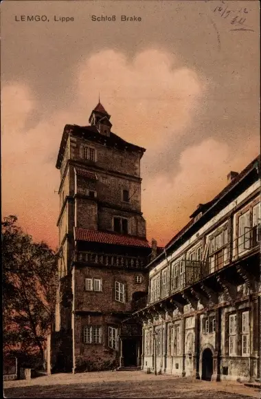 Ak Lemgo Lippe, Schloss Brake, Außenansicht, Dämmerung