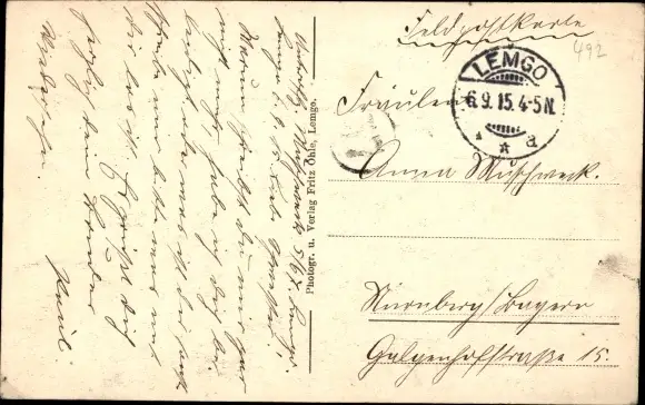 Zustand, siehe Scan, gelaufen, 1915 - ca 14 cm X 9 cm