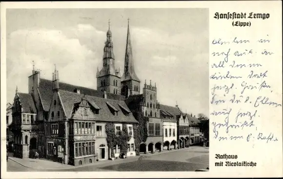 Ak Lemgo in Lippe, Rathaus mit Nicolaikirche