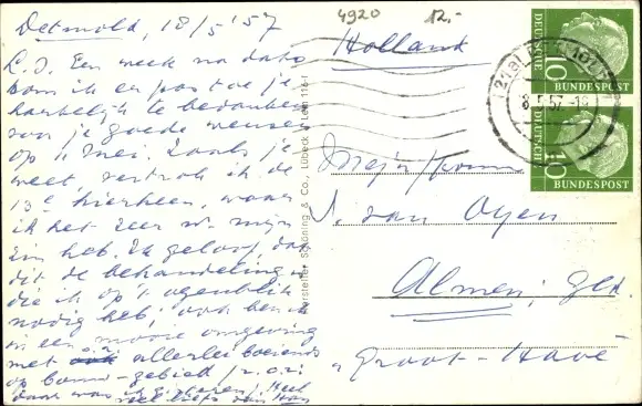 Zustand, siehe Scan, gelaufen, 1957 - ca 9 cm X 14 cm
