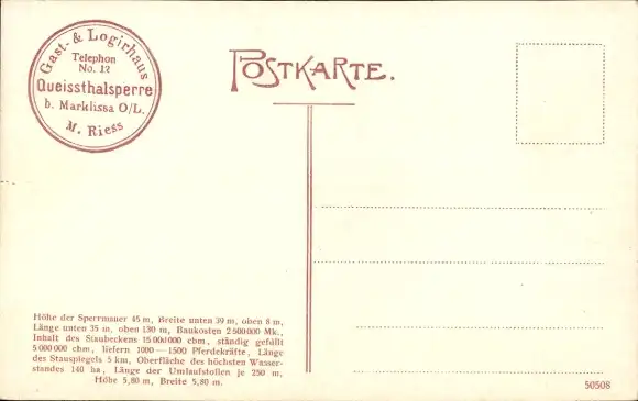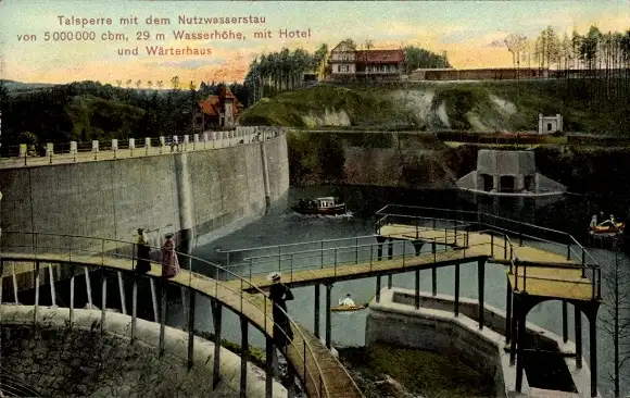 Ansichtskarte, Postkarte, Talsperre, Stausee, Staudamm, Staumauer, Talsperre