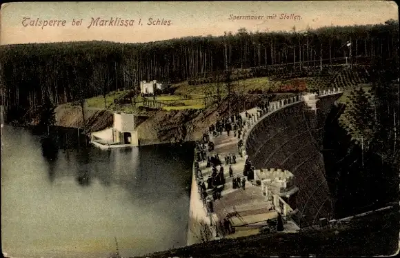 Ansichtskarte, Postkarte, Talsperre, Stausee, Staudamm, Staumauer, Schlesien