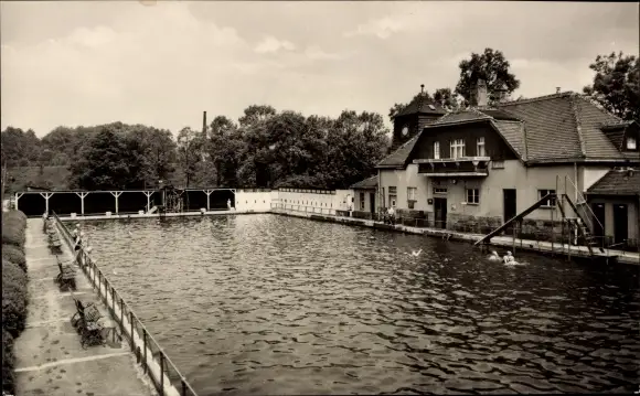 Ansichtskarte, Postkarte, Badeanstalt, Schwimmbad, Freibad, Strandbad, Volksbad