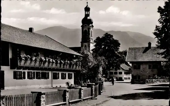 Ak Lenggries in Oberbayern, Kirche, Teilansicht