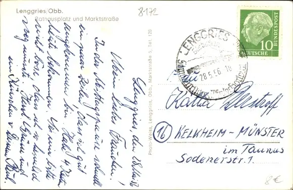 Zustand, siehe Scan, gelaufen, 1956 - ca 14 cm X 9 cm