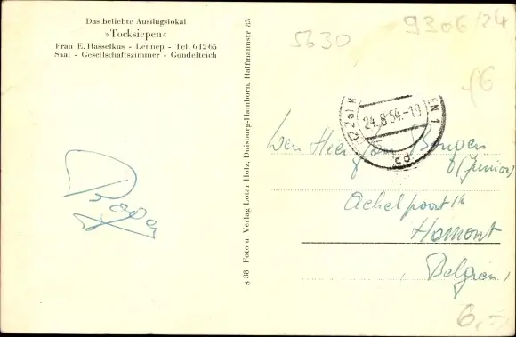 Zustand, siehe Scan, gelaufen, 1954- Inh. E. Hasselkus - ca 14 cm X 9 cm