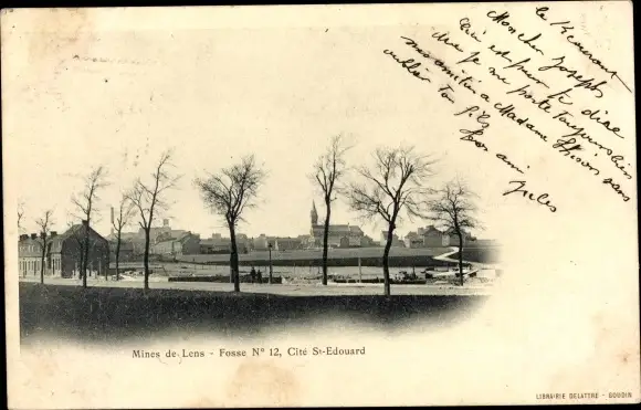 Ak Lens Pas de Calais, Mines de Lens, Grube Nr. 12, Cite St-Edouard