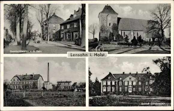Ak Lensahn in Holstein, Gemischtwaren, Kirche, Schloss Güldenstein, Fabrik