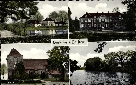 Ak Lensahn in Holstein, Kirche, Am Teich, Schloss Güldenstein