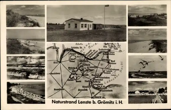 Ak Lenste Grömitz in Ostholstein, Naturstrand, Panorama, Restaurant Zur Düne