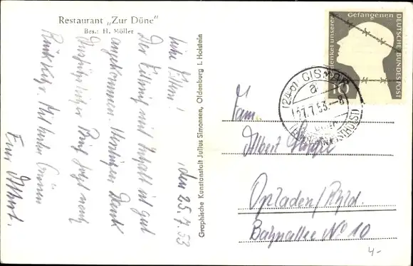 Zustand, siehe Scan, gelaufen, 1953- Bes. H. Möller - ca 14 cm X 9 cm
