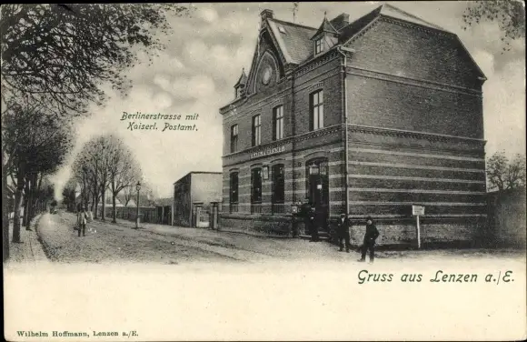 Ak Lenzen an der Elbe Prignitz, Berliner Straße mit Kaiserlichem Postamt