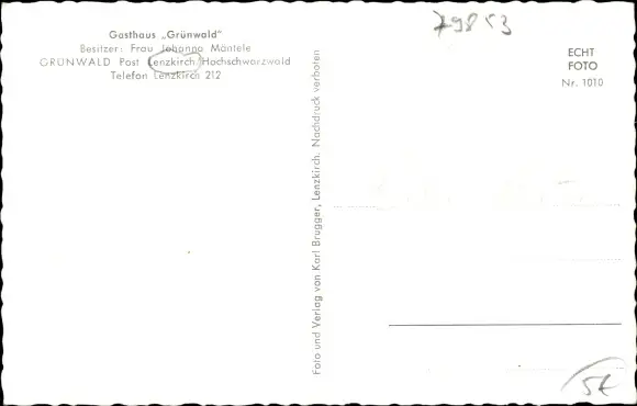 Ak Lenzkirch im Schwarzwald, Gasthaus Grünwald