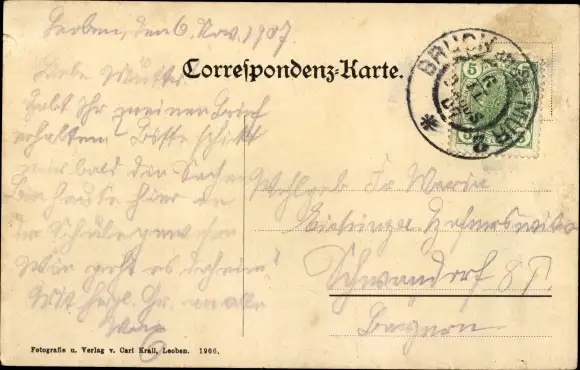 Zustand, siehe Scan, gelaufen, 1907 - ca 14 cm X 9 cm