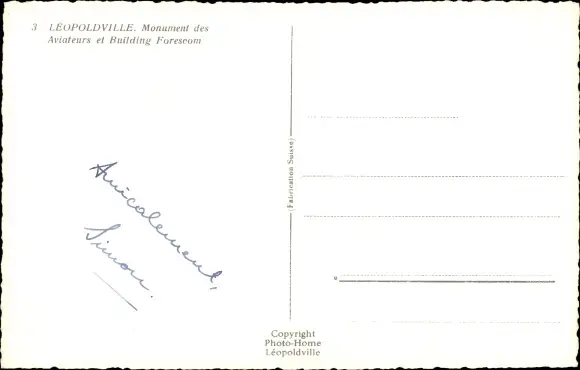 Ak Léopoldville Belgisch Kongo Zaire, Monument des Aviateurs et Building Forescom