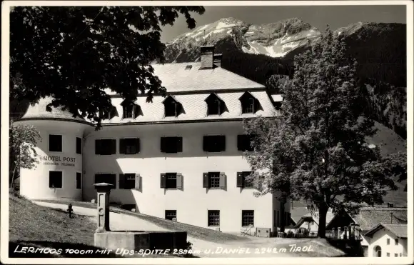 Ak Lermoos in Tirol, Hotel Post mit Ups Spitze und Daniel