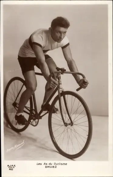 Ak Les Aces du Cyclisme, Radrennfahrer Dhuez, Fahrrad