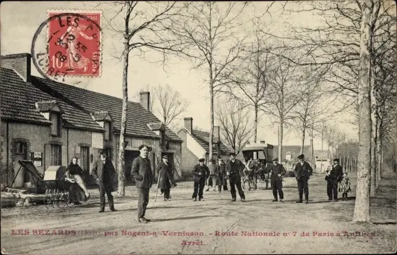 Ak Les Bézards Nogent sur Vernisson Loiret, Route Nationale no 7 de Paris a Antibes Arret