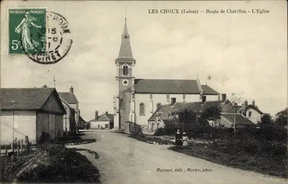 Ak Les Choux Loiret, Route de Chatillon, Kirche