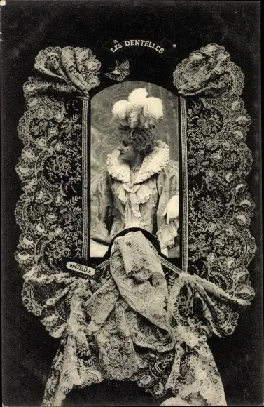 Ak Les Dentelles, Frau in Kleid, Klöppelwerk