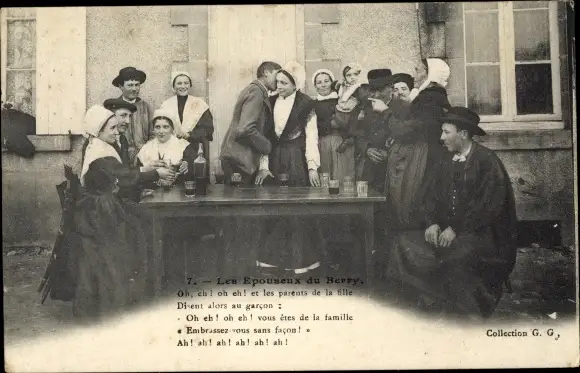 Ak Les Epouseux du Berry, Männer und Frauen in Volkstrachten