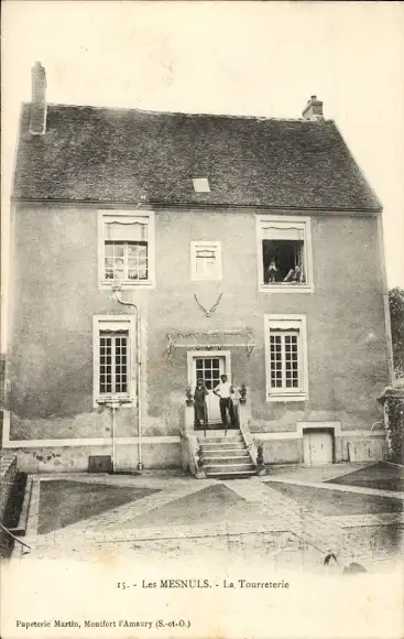 Ak Les Mesnuls Yvelines, Vorderansicht eines Hauses mit zwei Personen davor