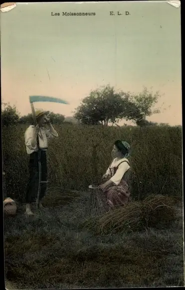 Ak Les Moissonneurs, Schnitter, Sense, Sichel
