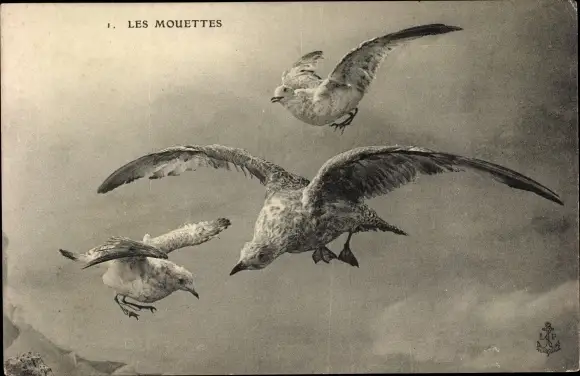 Ak Les Mouettes, Möwen im Flug