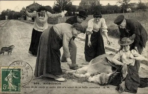 Ak Les Plessis Robinson Hauts de Seine, schlafender Esel, Reiter