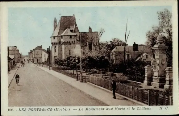 Ak Les Ponts de Cé Maine et Loire, Pont sur la Loire, Tram