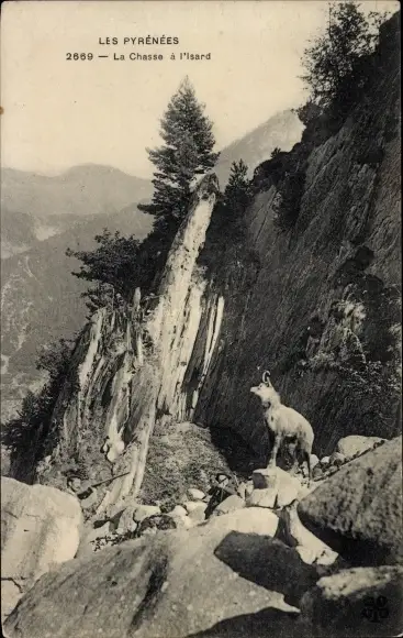Ak Les Pyrénées, La Chasse, vue générale d'un Isard