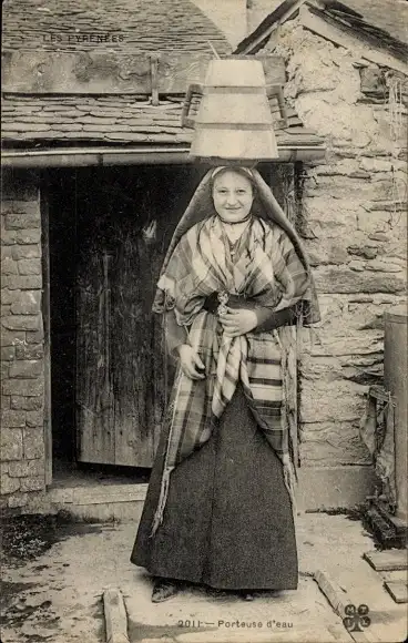 Ak Les Pyrenees, Wasserträgerin, Frau in französischer Tracht