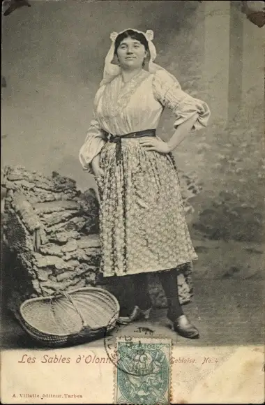 Ak Les Sables d'Olonne Vendée, Sablaise, Tracht, Korb