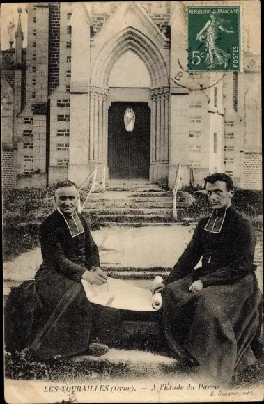 Ak Les Tourailles Orne, A l'etude du Parvis, Geistliche
